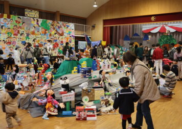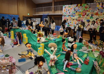 今日は「あけぼのっ子展」を開催しました。子どもたちが描いた絵や廃材を使った工作などを体育館に展示しました。テーマを「あけぼのパークへようこそ!」と決め、遊園地ゾーンや水族館ゾーン、フルーツパークなどで世界観を表現しました。
