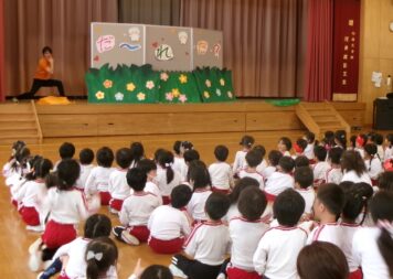 2月生まれは、年長さんが6人・年中さんが4人・年少さんも4人・先生が3人のあわせて17人でした。お誕生日をお祝いし、今月の歌を歌った後は先生の出し物。今回は先生クイズを行い、ヒントを聞いてどの先生かを当てました。会食会のハヤシライスとヨーグルトもとってもおいしく楽しい誕生会になりました。